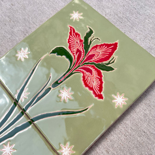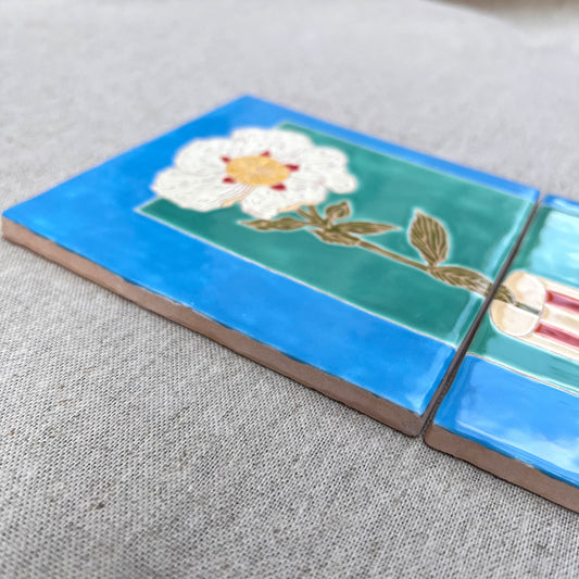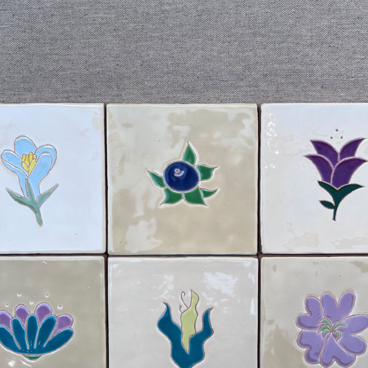 Three-Petal Iris: Hand-Painted Miniature Tile Mural