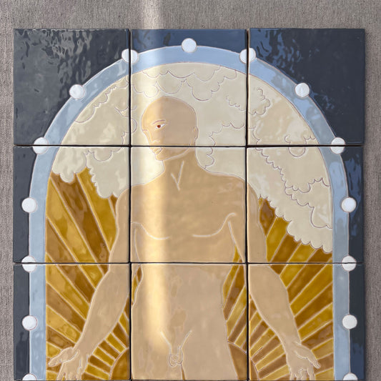 Male Nude 2: Hand-Painted Miniature Tile Mural